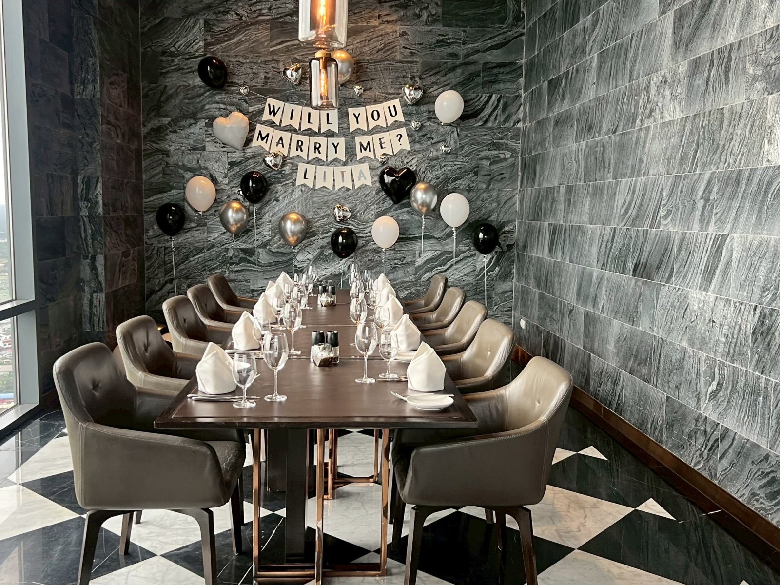 Host a private gathering in our exclusive room that seats up to 15 guests. Featuring large glass windows with sweeping city views, it’s the ideal space for stylish celebrations, private dinners, or themed parties of your choice.
