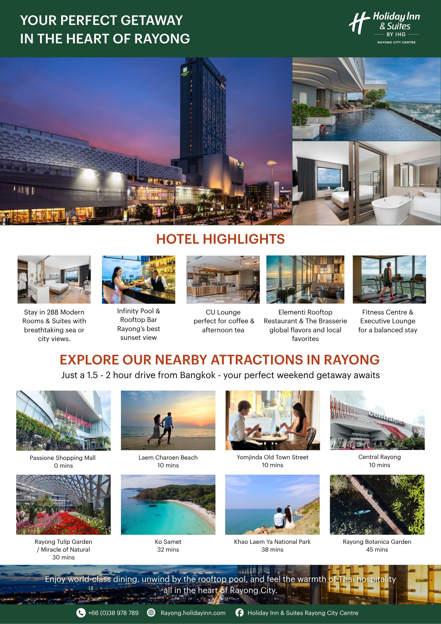 Enjoy your Rayong getaway with Thailand’s Travel Well, Get a Refund 2025 campaign! Stay at Holiday Inn & Suites Rayong City Centre and get up to 10,000 Baht tax deduction. Book now!