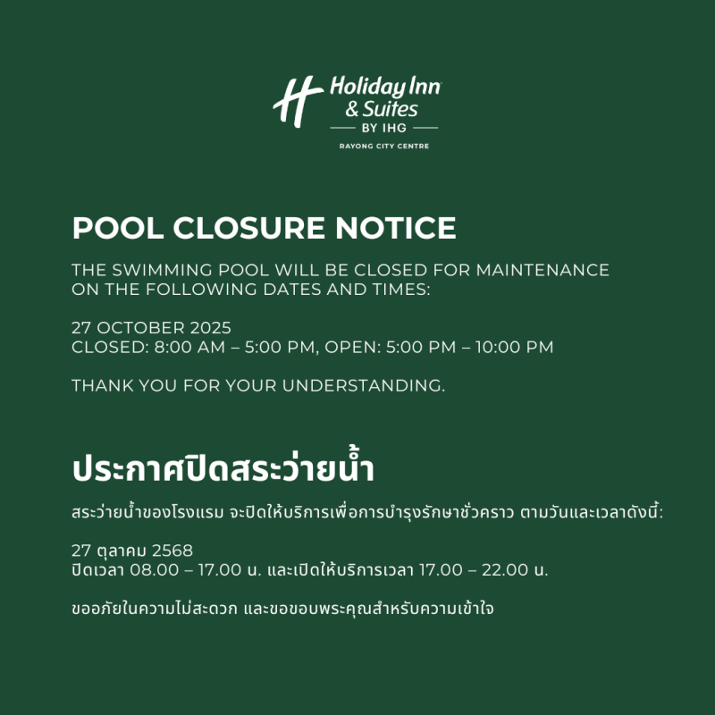 This summer, it’s time to escape the heat! Celebrate Songkran in style with an unbeatable staycation deal at Holiday Inn & Suites Rayong – starting from just THB 2,699/night! Located only 10 minutes from the beach, our hotel offers 5-star comfort, fun-filled activities, and everything you need for the perfect getaway. Book now and make this Songkran holiday one to remember!