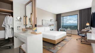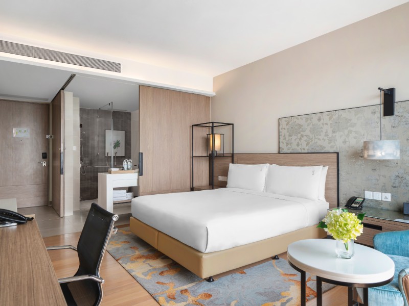 Located from the 12th – 20th floor,Embark on a serene getaway situated on the elevated floor of our sophisticated 32 Sqm room, offering the added comfort of two cozy single beds and a picturesque sea view or mountain view. This meticulously designed space features a practical work desk to elevate your productivity, seamless connectivity through complimentary Wifi access, and a roomy 43-inch HDTV for your entertainment indulgence. Every room is graced with our unique and opulent amenities, ensuring a stay that is both comfortable and luxurious. Renew your energy in the generously-proportioned bathrooms, meticulously crafted to offer the convenience of a separate bathtub and shower. This room is Nonsmoking.