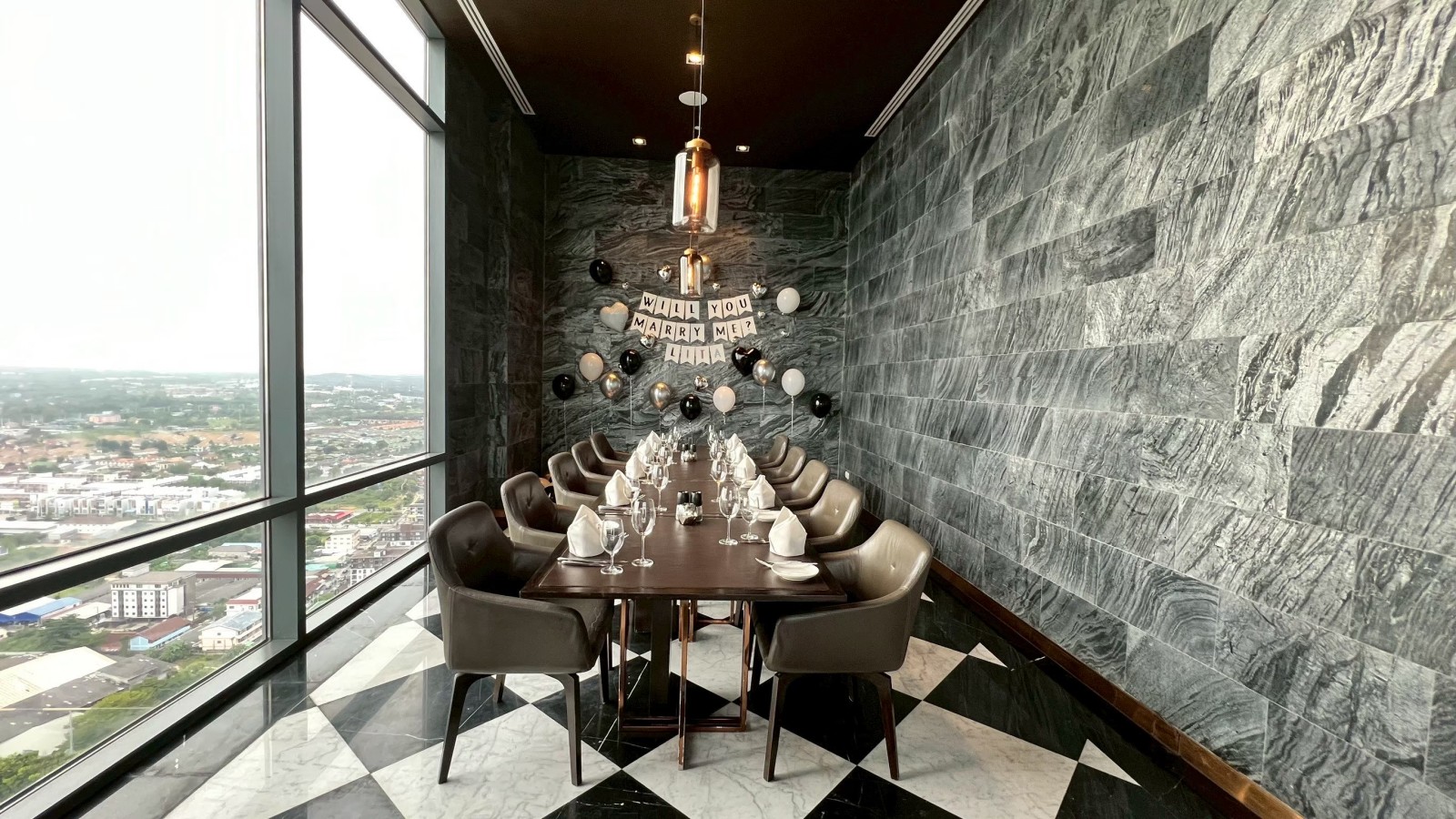 - ห้องไพรเวทสุด Exclusive รองรับได้ถึง 15 ท่าน พร้อมกระจกบานใหญ่ชมวิวรอบเมือง จัดธีมได้ตามใจ เหมาะสำหรับงานเลี้ยงส่วนตัว ปาร์ตี้เพื่อนสนิท หรือดินเนอร์แบบมีสไตล์